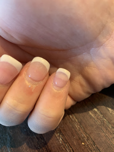 At that point she became rather rough with my nails, ripping 4 of my natural nails by going too quickly with too much force. She had to add tips on those nails to match my other hand and when I noted that several were crooked she snapped at me âIâm not finished!â