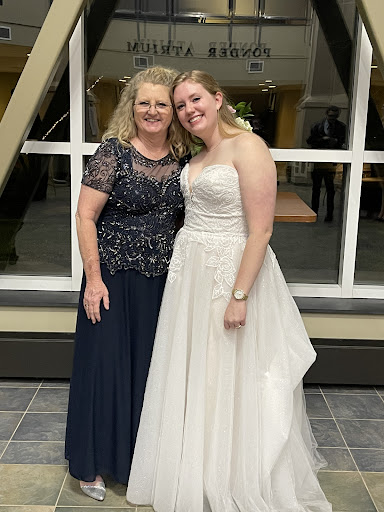 Pictured: on my wedding day with my mom, and first trying on the dress 10...