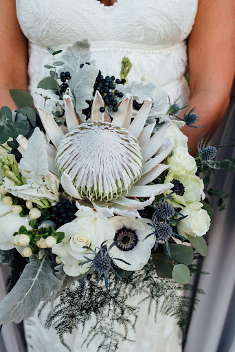 Karen was really fantastic to work with. We met with about 5 different florists for our wedding, and she was the only one that we felt 100% comfortable signing a contract with. She was very willing to work within our budget, and we never felt like we were being put on a back burner due to having a smaller budget or because we were planning the wedding remotely. She was always available to meet when we came into town and responded to emails promptly. She was very patient with our ideas and thoughts (my husband and I are both quite picky with what we like being architects and designers) and helped us incorporate some of our own centerpieces and design elements into her arrangements. Because we had a low budget and asked for a lot of greenery and ferns/terrariums rather than flowers, I wasn’t expecting to be blown away by the flowers but when I walked into the reception I just couldn’t believe how beautiful everything looked and how she went above and beyond with it all. It was more beautiful and unique than I could have ever imagined and we received so many compliments on our centerpieces. My bouquet was also absolutely beautiful, and my only regret was that I couldn’t take it with me after the wedding, and that I didn’t take more time during the reception to go around to each table and take it all in more. We also decided to decorate with giant white weather balloons (some were up to 8’ in diameter) and Karen and her team also did a great job with coordinating all of that and hanging them from the rafters in addition to all the flowers and candles. She let nothing phase her! I would absolutely recommend Karen to anyone who wants someone personable, and will work with you to deliver something that works with your personality and taste, not some cookie cutter and overpriced image you will find...