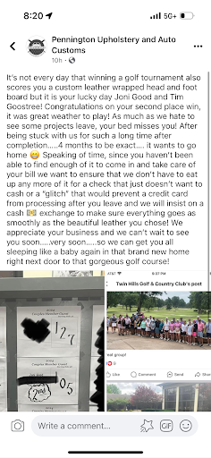 Read moreGot an atv seat done it turned out great. Wish they had more communication when giving quotes on a price. But that wasn't the big issue. Knew the seat would cost around 150 but when I get a total of 230 and that the seat is ready. I was shocked Evidently they don't call ahead when they need to do more then what I got quoted. A simple phone call saying they needed to replace the foam or it will be an additional X amount I would have been about...