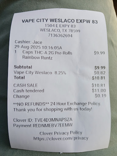 Read moreMy experience at this Vape City was beyond ordinary. I am not from the area but I decided to pass this location. Let me tell you the outside parking lot was pretty well kept. As I went inside, I was greated by an employee named David Limon. He was by far the friendliest gentlemen Ive encountered. If there is any place for promotion, he should be the one promoted. He Asked me how my night was going and made the environment comfortable. I went to buy a disposable device and there was none. I was sad, but Mr. David made sure to offer me other items. I left the place buying two items I originally wasn't expecting to buy. 10/10...