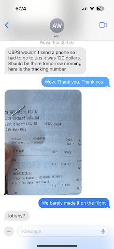 Terrible experience. My sister-in-law paid $120 to send us our daughterâs phone which tracks her blood sugars overnight, after we forgot it on the way to the airport. They claimed she actually paid for three day shipping (which is crazy to think that it would cost that much for something thatâs 8 ounces). She had already been to USPS but they couldnât guarantee next day so she came here. When I followed up with them, they told me she signed off on it getting there three days later. I explained that she had gone out of her way and above and beyond to try to get us this medical necessity. They said it was on us and they did nothing wrong. I explained that we are footing the bill and she just wanted to get it to us so their employees clearly miss something. They pretty much told this tough luck even after I offered to donate any offer to one of her medical foundations. Please stay clear of...