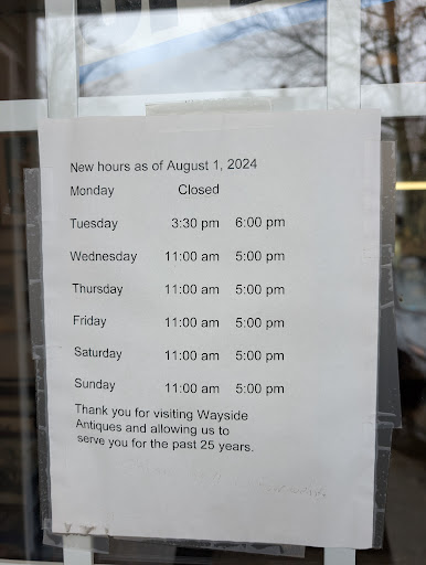 Read moreI made 2 trips to wayside because I was very interested in a clock there. I was told the owner would set it up to see if it runs. The manager forgot to ask owner to do so. No one knew anything about the clock and it was priced high. Wasn’t going to purchase it because they did not assist me at all to see if it runs! Poor...