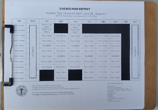 I remember when this place used to be packed with Hispanic families it had a lively and vibrant vibe. Coming back recently, the neighborhood dynamic has definitely changed, and it feels much more chill now. They've also renovated the locker rooms, making them smaller than before. Just a heads-up: they no longer provide shampoo or soap, so it's best to bring your own. There are lawn chairs available for use, which is convenient. Every 45 minutes to an hour, they make everyone evacuate the pool and wait outside for a mandatory 15-minute break. There's a nice park next door and a play area for kids. Unfortunately, they removed the kiddie pool, so that might be a drawback if you have...