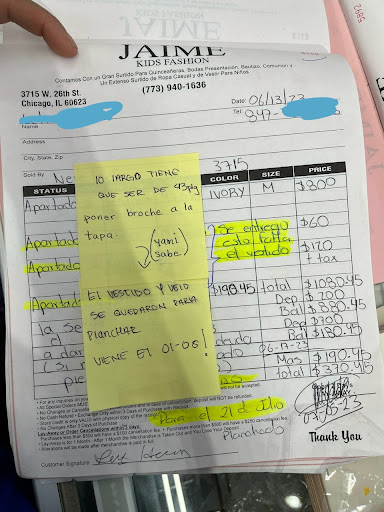 Quieren algo bien? AquĂ­ no es. Desde el 13 de Junio, dejamos el deposito para comprar un vestido para la boda. Hoy estamos a 9 de Agosto y la boda es este sĂĄbado y aun no esta listo. Nota tras nota como pueden ver y aun asĂ­ no estĂĄn los arreglos. Pago tras pago, y no esta listo. No vengan porque solo los van a tener en rodeos. Uno quiere ser las cosas a tiempo, y aun asi no coperan. You want something good? Don't come here. That simple. Been trying to have the dress ready since June 13 and the wedding is this Saturday and the dress isn't ready. Tried doing everything on time and nothing is getting done.