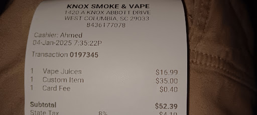 I would like anyone to compare the very small box and the very large juice. No, not a trick. That small vape juice cost us $30 at this place. We visited Veteran Vapors off Airport Blvd and got the large 100ml vape juice bottle for $14.99.