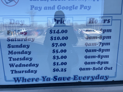 I've been there twice. First time on Friday, when everything is their "full price" that being $14 per item purchased, then I went again on Wednesday when everything was $1... even a box with 4 items it in ... only $1.