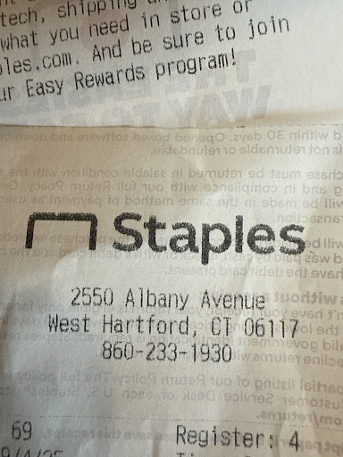 Read moreI went to pick up my order on a Monday afternoon via curbside pickup (I had my 8 months old baby in the car sleeping), on the phone for 6 mins someone picked up but it was from a customer service then he transferred me to the print department waited another 5 mins NO ONE PICKED UP THE PHONE!!! So then I had to carry my baby inside woke him up from his nap, then I walked in while the phone is ringing in my hand and there are 2 people in that department with NO customers of course and I said "you don't wanna pick up that phone?" Like seriously?!?! Then I said hi pick up? Then the lady said "FOR?" Is that how you respond to your customer? Instead of ok what's your last name or your order number? What is the point of a curbside pickup? I would normally don't do curbside but it was necessary because I didn't wanna wake up a sleeping baby. Very poor customer service....done with Staples...but who cares right? The management team isn't gonna read this anyway. But I hope someone from the...