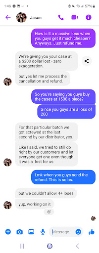Not only that but I brought in two other customer who also bought cases which were canceled and then I was supposed to get a referral discount which they couldn't give me anymore.