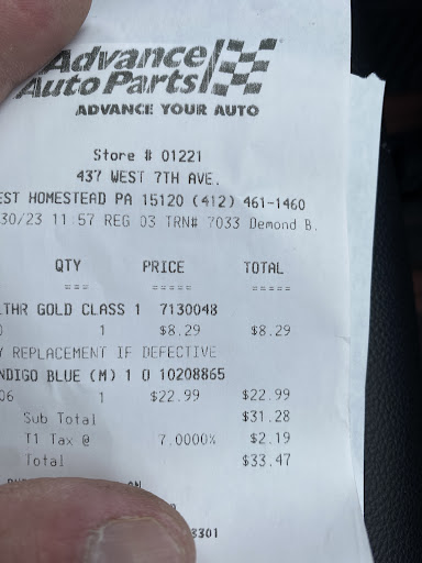 Ā Ā Ā Read moreAs a woman who does not know much about mechanical things and definitely does not know much about cars not having any male figures in my life to ask a simple question or to tell me what certain car lights mean I ventured off to Advanced Auto on West 7th Avenue in Homestead Pennsylvania the manager there his name is Sebastian and he is the epitome of customer service this man is kind knowledgeable and will help you if you need help or point you in the direction that you should be going to get the help that is needed for your car I don't know what I would do if this man was not a part of this auto mechanics store in the area of which I live not only that this Advanced Auto store well install windshield wipers if you need them they will install batteries if you need them they will charge them they will check your batteries for you this is a great place and it's friendly the workers who work behind the counter in the store are eager to assist also so if you are in the need of parts for your vehicle or questions that maybe you don't have the answer for check these guys out they may have to help you need or the direction in which...