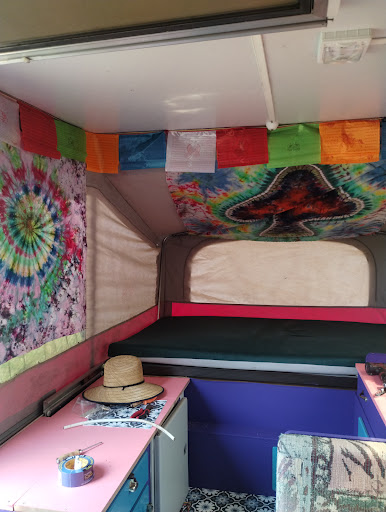 Need a gift with a good vibe for someone special? There's a lot to choose from in this little shop. Lage amounts of tye-dye clothing/tapestry, crystals, and even hot sauces.