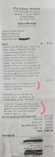 I came in for a replacement battery for my S10+. The battery was not in stock so the tech ordered one. He said about 2 days as one was in Orlando I believe. I came back in about 4 days and the battery was not in yet but I was assured it was on its way. Gave it a few more days and dropped in to see if it had arrived. The tech advised me he could install it in about 45 minutes as my back glass was already lifted due to my battery swelling. My phone was locked and he required my pass code...to replace the battery??? Well in about an hour and a half he came back to the counter with my phone with the new battery installed. I was happy to see my phone with the back glass reattached but then I noticed a 2 inch long fresh gouge in my front screen. I questioned the tech about the gouge and he stated my phone had the gouge when I handed the phone to him for repair. He edited the Condition notes to reflect the new gouge, being presented as a cracked screen. In a previous visit he commented on the outstanding condition of my phone as there was not a single scratch or ding on my 4 year old phone. He denies them defacing my phone despite the rough edges of the fresh gouge. He said he would replace my factory installed screen protector with a new one. Additionally, my phone was in the debug mode so someone was snooping my phone. Once again he did not have the exact material in stock. I continued to "drop" in as they never answer the phone and voice mail also is inoperative. After 3 total drive bys and final straw was the saver stock finally at the store but the tech on site could not cut it out as the tech with the software, on his phone was not present. I gave up and have been waiting to craft this negative review of this Palm Bay location. Horrible experience and now that I have put it in words I plan on crafting a Google review with the same text. The subject of this remarks section is "What could we have done better"? Provide leadership and apply standards for this...