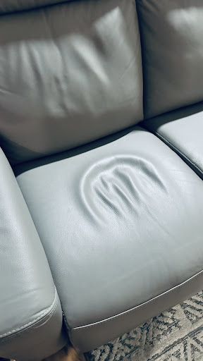 Just before the delivery persons left I noticed a crease in the sofa fabric on the left side cushion where it was probably wrapped. I presume that will straighten once the sofa sofa stretches out after the restraints were removed.