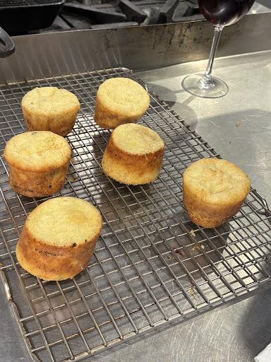 All of the food was basically inedible. Our steaks were raw, the salad was awful, the mashed potatoes were lumpy and wet with skins in them (we were supposed to use a food mill and the pre-measured liquid ingredients were wrong and he had us just throw everything into the pot with the potatoes and you were supposed to slowly add them), the salad was just lettuce and not good and the espresso mousse was gross (even when we were making it it looked curdled).
