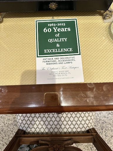 If you're in the Palm Beaches and in the market for superb, high quality antiques, the Elephant's Foot is the place I would recommend. Excellent selection as expected from what I saw, but more importantly, great owner knowledge. I went in to inquire about two pieces my wife's family owned and was so impressed with the amount of information that was provided about them based on photos. What was even more unexpected were the amount of time dedicated to imparting this knowledge, and the absolute willingness to share it despite the understanding that it would not produce a sale that visit. I was given details about the history of the pieces, their likely pedigree, their probable value range, and even recommendations about shipping sources and costs. All in all, a most...