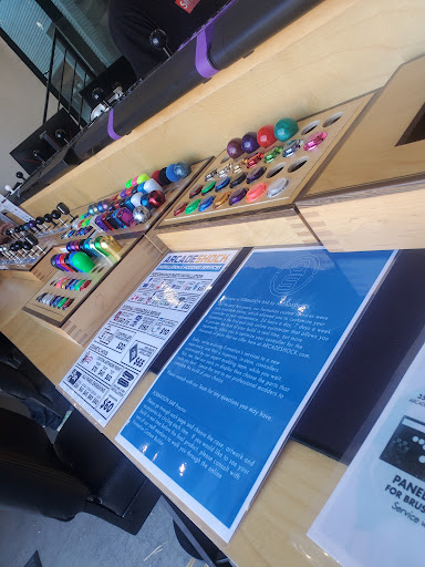 The shop is located in a small corner that's pretty easy to miss if you don't know what you're looking for. The physical space is very small but it's packed full of parts on display for you to fiddle with and test! All the associates are very cool and had helpful recommendations for me and my friend! They didn't try to upsell us on products or services, they just answered questions we had. We played around with the parts looking for the right feel and noise level. I might have gotten a little distracted watching the twitch stream if Street Fighter 6... but they didn't try to rush me out or anything.