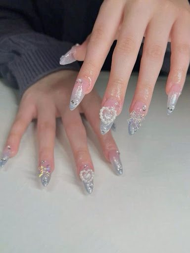 GEL X NAILS: i came here not knowing much about gel x and wanted to try it out, so when i asked for the nails in the first pic (minus the gems) and it wasnāt looking close i tried to aid my tech by adding my input. instead she (forgot her name bc of the trauma) pushed my input to the side and rushed me making me feel like the problemš so i shut up and trusted the process and⦠wish i didnāt lol! i unfortunately thought i could like them somehow still but ended up just cutting them at home to see if iād like them better w the almond shape iād ORIGINALLY asked for (how i ended w those stiletto claws,, idk š„¹)