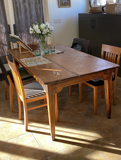 We had been looking for the perfect dining table for our new home -- one with soul for the centerpiece of our living area at which we would eat, work, and play -- but nothing we saw in local stores felt right. Then we discovered Adam. He made the perfect table for us, a 10-foot table made of quartersawn planks from a red oak tree that used to be on the Medina Ballroom property. This table has soul and will be with our family forever.