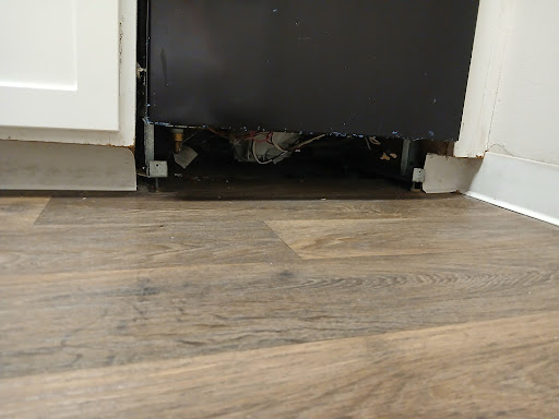 Additional Safety Hazards There is also a missing panel under the dishwasher, leaving sharp edges and exposed areas within my childâs reach. This is extremely dangerous for a 1-year-old who is naturally curious and at floor level. Combined with the oven handle/glass issue and missing screws, this shows a clear pattern of negligence in preparing this unit for safe occupancy.