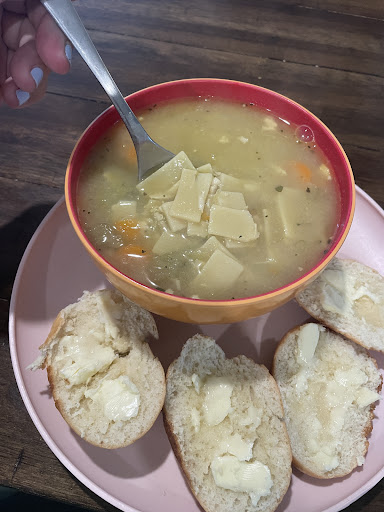 Read moreWe received this in the mail about a week ago. I had never heard of it, but it was sent by my husbands company when we all came down with Covid. OH MY HEAVENS! I can’t say enough good things! We both hate chicken noodle soup, but this was delicious! My husband and I added garlic salt to it, and kept commenting on how good it was throughout dinner. We ate both tubs of it! The rolls were amazing as well! It also came with a cute ladle, some cookies, and I need to geek out about the packaging as well. I thought the packaging was absolutely adorable! I loved the fact that you could turn the patterned boxes right side out and reuse them for storage, or to regift them. We were so pleasantly surprised and touched by this. I plan on always using this in the future when I have friends or family in need of a...