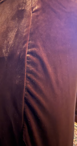 My sister is a seamstress, well known for her costume designs and alterations. She lives quite a distance away. I sent her a video and photos of the dress and asked if the alterations were done correctly. She confirmed my doubts. It was done wrong. So, now I'm going to drive up to see her so she can fix it. I just hope the velvet isn't ruined on the one side.