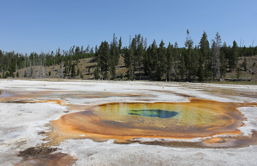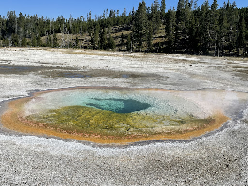 Chromatic Spring si trova a 30 metri a ovest della Beauty Pool altrettanto colorata, ma più grande. Entrambe sono proprio accanto al sentiero e quindi sono facilmente visibili da vicino. La piscina blu-verdastra di Chromatic Spring ha un diametro di circa 10 metri, sebbene lo sfiato sia molto più stretto; la maggior parte è superficiale, ricca di sfumature colorate di rosso e arancione dai cianobatteri, i colori profondi indicano che la temperatura dell'acqua è relativamente bassa. Il canale di scolo è di colore simile, diretto a nord, poi piegato a ovest verso il...
