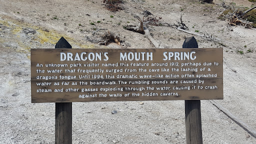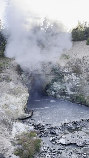 Read moreUnexpectedly one of my favorite stops in Yellowstone. A little mysterious and spooky. This partially submerged cave in the side of the hill was belching Steam and making strange sounds echoing out of the opening. The gases coming up in side under water were pushing small waves out of the opening. Reminded me of a Lord of the rings or Hobbit movie scene. I posted a general video on maps but it doesn't capture the sounds that...