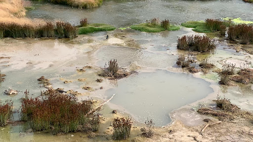 Right nearby, a bubbling mud volcano adds to the otherworldly scene. You can watch the thick, gray mud burp and bubble like a brewing potion, constantly churning and releasing gas. It’s a fascinating reminder of the geothermal energy simmering just beneath the surface. Both features are part of Yellowstone National Park’s incredible geothermal system, and they’re not just cool to look at—they’re also windows into the powerful, volcanic forces shaping the Earth. Whether you’re a nature lover, geology nerd, or just someone with a vivid imagination, the Dragon’s Mouth Spring is a must-see. Just try not to...