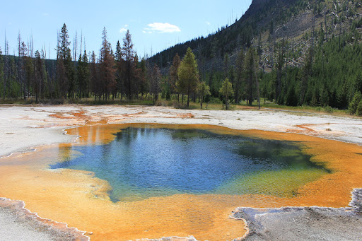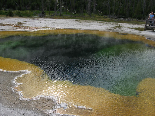 We visited Emerald Pool in Black Sand Basin and found easy parking for our 11' pull behind camper with minimal crowds in September. The pool’s current orange coloration is due to thermophilic microorganisms that colonized after a decrease in water temperature, shifting the system’s dominant microbial community from those that prefer higher temperatures (which produce blue and green hues) to those that thrive in cooler, more...