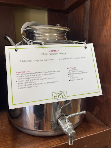 Read moreFirst time in was last during 4th Friday in Uptown...what a wonderful store! so many awesome oils and vinegars to choose from...you can taste them to make sure you like what you are getting before purchasing, and many different sizes of bottles to purchase. The prices are very reasonable as well for what you are getting. Appreciated the fruit salad recipe and can't wait to make it tonight. We will definitely be back for us and for gifts for the holidays!...