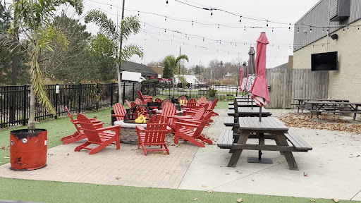 They have an outdoor patio that large, has many tables and chairs, palm trees and working fire pits. Even on a cold day like today, I could see myself enjoying a beer close to one of the fire pits.