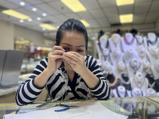 This store also has fabulous gold jewelry at great prices! The craftsmanship of her gold pieces are outstanding! They are truly collectibles that will be passed on as heirlooms! High end brands that charge an insane premium are outdone by what this jeweler has to offer. You will get the gold, the style and the quality for a fraction of the price! My girlfriend bought earrings and a necklace in-laid with mother of pearl. They were identical to the high end brand. Despite the three of us using a Diamond loop, we could not spot the difference....