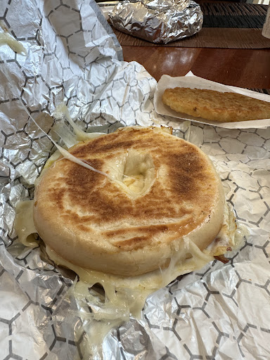 Adorable little store with lots of local sauces, seasonings, honey, soaps and other goodies. Wonderfully aromatic coffee that was absolutely delicious. We also ordered breakfast sandwiches, which were maybe the best we’ve had. I had a bacon, egg and cheese bagel and my husband got bacon and egg on rye bread. We didn’t wait long, and everything was piping hot and fresh when we received it. The hash browns that came with were amazing and crisp. Bagel was grilled but still soft, the rye bread had so much flavor, and the bacon was exceptionally delicious. We asked for our order to go (hence the wrappers), but decided to sit down last minute because we liked the atmosphere and cute tables. The staff were very welcoming and kind, and seemed to know customers by name. One of the girls asked us if it was our first time coming, and when we said yes, she ran behind the counter to get coupons for both of us for next time. Menu prices were very reasonable as well. We will definitely be back—we are looking forward to trying the reubens, and maybe that Pollock Johnny that the man beside us seemed to enjoy so much that he went up to the counter to ask if they sold just...