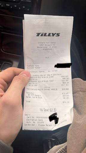Read moreNot a great idea to open two hours late with no signs up. I drove here from Longmont just to go to Tilly's, but instead JCPenny got over a hundred dollars from me instead of Tilly's. Very ignorant, especially during a business downfall time, covid. They always ask at the checkout if anyone offered help today and no one ever does. Overpriced and inconsistent. I can say that Tilly's will not much longer be a place I visit. The drive is just not worth it with the subpar...