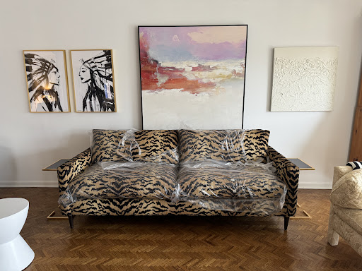 Positano's is the real deal, these guys are THE guys! Upholstery is a dying trade and it such an important skill. If you have a good quality piece of furniture that just needs new life, bring it to Raphaele. I brought him a 7' tuxedo style sofa is desperate need of his service. The sofa I received in return, its an absolute showstopper. I can't bear to take all the plastic off yet, it's too perfect! This Dania sofa from the 80s was reupholstered and recovered in this iconic Thibaut Tiger stripe - this is now an heirloom piece of furniture. This is going to out live me! I cannot say enough about the craftsmanship of this piece. Look at the pattern repeat, it was laid out perfectly across the sofa, the seems line up, the panels used on opposite ends are repeated and inverted so that they translate the same on both ends of the sofa. The cushions are new and firm, the corners were addressed, even the feet were repainted. None of which I asked for. This is high quality done by a business with high standards. If you have a good piece of furniture, give it a second life!! Do it, it's worth the investment, you will be so happy, let Raphaele take care of you! (my room isn't finished YET -...