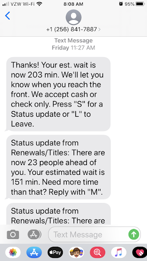 But yet it was ok to waste her time having that conversation with a perfect stranger who had no business with it. When it was my turn, I also got the eye-roll attitude, but I stopped her by saying: “I have no idea how the returning a license plate process works.” It only took her 2 minutes to do it, but I waited for 1 1/2 hours because there was no information. And when I first asked, I was told to “raise my voice,” because she said: “are you talking to me? Because I have my music and tv going and can’t hear you,” with a nasty attitude.