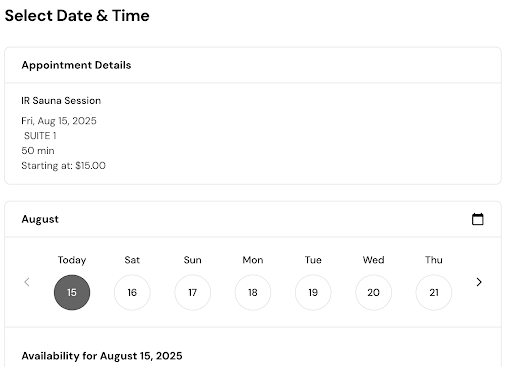 The real kicker is when I was told the price change is now $60 I said, "that's so interesting because it doesn't say that anywhere. I am on the website now and I can select a 50 minute IR sauna session for $15". I am looking at it in front of me (attached below). She said "yeah people often get confused there, that is actually for a salt rub add on, lets call it that I forgot the exact name , that doesn't actually cover the cost of the IR sauna session, its the price of an add on." I said "ok well that is intentionally deceptive and misleading, basically a bait and switch to get people in."