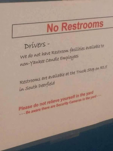 I donât even want to give you one star. This place is not driver-friendly, especially against humanity. I came here last night because we usually drop trailers and go to the truck shop. However, they wouldnât let me go to the truck shop because they didnât have a spot to drop my trailer. They wanted me to wait with the truck, and then the next morning, they wouldnât let me use the restroom. I was stuck in the yard for more than eight hours. Finally, I went to the shipping department and asked for a restroom. The lady inside told me they donât provide one. This place is...
