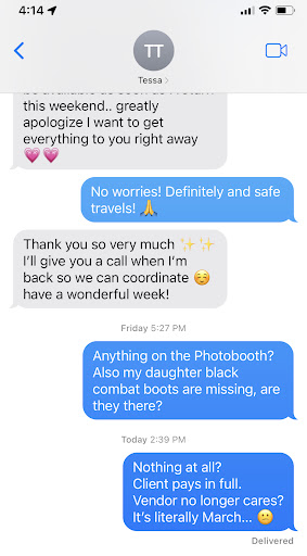 Given the balloon arch fell apart before the event even started, we thought we would get a credit or refund but was shocked when Tessa refused and only offered a discount for future events. I was also appalled that she tried to put the blame on us for picking a location that was not her original plan but this was never communicated because she sent someone else to setup and that person said they could install it in the location we chose. I felt taken advantaged of because I expressed concerns that the balloon arch needed a frame to stay up and Tessa assured me that the balloons and arch would be prepped so they would last even though we were installing the arch outside. I definitely think this could have been prevented had Tessa communicated her original plan, brought the proper supplies to ensure the arch stayed intact, and fully communicated any risks with the way the balloon arch was setup. I’m writing this review to warn others of what happened to us because we essentially wasted our money and never got a refund, although it was not our fault the balloon arch broke in half. I will say, Tessa was very nice and accommodating when we initially spoke but I was really disappointed when she did not refund us and blamed the situation on us when their string broke! Would not recommend if you want a balloon arch outside and you want it to...