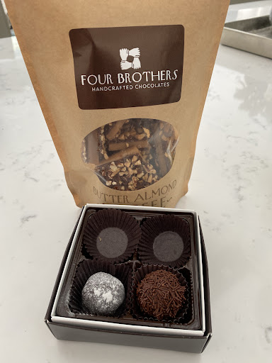 Read moreIt’s dangerous that this location is so close to my work. Situated in the cute little building that used to be Jack Straw’s, this chocolatier instantly became a new favorite! Today I picked up a sampling of sweets for my family: I tried a Hawaiian truffle, nonpareils, and the butter almond toffee. Normally toffee gets stuck in my teeth and although I love it, I steer clear, but Four Brothers’ toffee was definitely better! The girl inside offered me a sample and I was instantly hooked. It was very smooth and fresh and melted in my mouth like buttah! I will most certainly be back for gifts and the occasional treat...