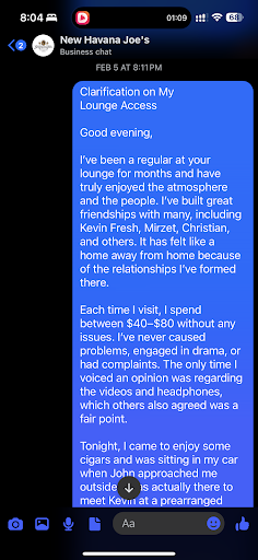What I shared had absolutely nothing to do with your business, staff, or patrons. If you’re excluding me based on someone else’s personal interpretation of my life—rather than anything I did in your establishment—that’s a serious overreach and a poor reflection of how you handle conflict.