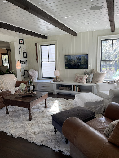 A few years ago, they built a fireplace mantle and a built-in buffet for our new keeping room and finished it in a rich color and finish called chocolate rub, and was perfect for our new addition.