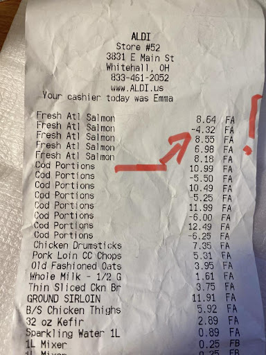 Read moreBe carefull! check your receipts! On January 26, there were 50% discounts on fresh cod fish and pink salmon. I bought 4 cod fish and 4 pink salmon. look at the receipt: she counted only one piece of pink salmon at a 50% discount. the rest are at full price! and it is impossible to say that she was mistaken because she counted the first thing correctly. a lot of scammers have appeared! Previously, if you were shortchanged, the store apologized and even gave away this product for free! And now there is no reaction! I wrote a complaint to the Aldi board - they answered me: “your message is very important for us”... and nothing more! They didn’t return the money, they didn’t even apologize properly. This is how they value...