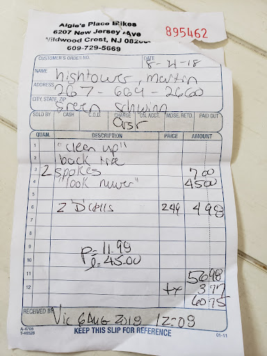 Read moreI brought in an electric bike (I bought online) that got damaged in shipping to me, to be fixed. Algies gave me a much better impression on the phone compared to Zippy's, so I had them do the work to get the bike fixed. The bike turned out great! The guy from the store was very nice and unphased by the fact it was electric. He went above our expectations and even greased the seat with a product that helps against rust from the salt air. I highly recommend using...