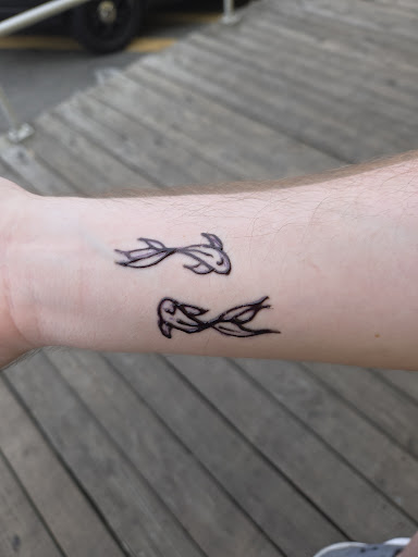 Ā Ā Ā Read moreso this place is an absolute scam. we felt pressured to get henna tattoos, then stated their initial prices, which for a small henna tattoo, was fine with me. The younger one did the henna tattoos on me and my boyfriend. Then walking up to the register we were told it was going to be 90 some dollars for matching tattoos of this quality pictured below. Better yet, she never told us there was a card fee, just tax, so I was charged 102.02 for these tattoos. Tried going back to dispute this outrageous amount, but said they couldn't do anything other than give us a 20% discount of the entire store. I didnt take it because I already spent wayyyy too much for two little henna tattoos that aren't even that good. And when we got the cops involved, they talked and mentioned that each fish was technically one tattoo, which we were never told at any point of time. She already had the tattoo drawn out and only took at most 5 minutes for both of us to get done. This is not 102 dollars worth of quality! They tried to offer a 20% off discount again, but I didnt take it because I didnt want to get scammed again. They were really rude when we tried talking to them, saying we couldn't charge back on the card or do anything about it. Do...