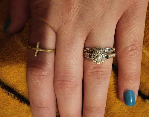 He took my engagement ring and wedding ring a couple weeks ago to get them Soldered together, cleaned, and my wedding ring needed to be resized down a half size.