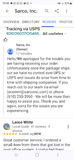 Read moreUPDATE- June2021: Since my last review in 2018, I have purchased ammo, targets, and a firearms from sarco and I have to say things are slowly yet steadily improving. Little pockets of weird insecurity and bravado are still semi-there, but I can see that the small details are being polished out and I am happy for their team to see such improvement. The environment is no longer adversarial, and customer service has drastically improved. Management seems to be more available and responsive to issues that customers are experiencing. I commend Sarco for listening to their customers and I hope they keep up the good work moving forward.
