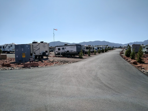 Read moreOverall nice park, but right next to the railroad tracks so the noise of the trains could be an issue to some people.. We had our 3 yr and 5 yr old grandsons with us so they LOVED the trains going by. |Not much shade, but not a big issue for us this trip (fall and not too hot).|There is a dog-walking path around the park with clean-up bags and trash can on it. | Management was Very accommodating as far as # of persons at our 2 campsites(6 adults, 2 children and a baby), including allowing a medium size tent to be erected near one of our Travel Trailers on the same site, no extra charge. However, not being able to use stakes means we had to use/find large rocks, bungie cords, and cinder bags to secure it in place of tent stakes. Same for our Coleman Easy-Up. |Management placed our 2 travel trailers(TT) in 2 sites, side by side, on the end of a row at the back of the park which worked very well for our family with small children. The full hook-up Sites are very level asphalt, good for TT and RVs. |Nice clean restrooms and free hot showers with soap, shampoo, and conditioner dispensers. and a laundry room which sported a vending machine of laundry products, all which require an entrance key card that is provided at the registration desk, included in the fee.|As far as amenities, there is a very nice little playground with a couple of benches and a picnic table across the street from the campground that our grandsons enjoyed very much. There is a horseshoe pit right by the playground as well as a sand volleyball/badminton court. You'd need to provide your own equipment, I think. We played bocce ball in the horseshoe pit! Though there is an indoor pool and hot tub available to campers at the hotel, we didn't find them convenient as there is only 1 small restroom/changing room, no shower, at the pool so we had to either walk wet all the way back to the campground to shower and change or get into our car wet and then shower and change in the campground.|Management provided a free golfcart-type shuttle to and from the campground to the train station for us to take the Grand Canyon Train. They allowed us to take a folding stroller and a fold-up wagon with us as well. Very accommodating, and the shuttle driver, Dennis, was especially helpful and kind!|Good location if you are planning to take the Grand Canyon Train and/or go out sightseeing...