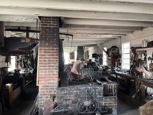 A great place to visit and learn about Colonial America metalsmithing and forging. Colonial Williamsburg is a wonderful place to visit that really brings American history to life. It offers visitors a unique glimpse into 18th-century America with real shops, people dressed in period costumes and buildings maintained as they would be in Colonial times. Located in Williamsburg, Virginia, this living history museum spans over 300 acres and includes restored buildings, interactive exhibits, and costumed interpreters. The site is an immersive experience where you can walk along cobblestone streets, interact with blacksmiths, shopkeepers, and even participate in colonial-era activities. I would recommend starting your experience at the Colonial Williamsburg Visitor Center but you can go directly to the city where there is plenty of parking in parking garages along the outer streets. You can see lots of different working places in the city like the blacksmith shop. It is excellent. It is well marked off the south side of E Duke of Gloucester Street. A ticket that can be purchased at the visitor's center is required for entry. You walk through a courtyard and around the side where a forge is operating and 2 people are working the shop. One spent the entire time we were there answering questions asked by visitors. There were samples of the various items that they have made on the counter as you enter. It was wonderful and both staff did a wonderful job of explaining how they are worked during the colonial era at the shop. They explained what they would and would not be making for the community during that period. It was fascinating and impressive. I would definitely recommend this stop for all the makers out there as well as people interested in the history of the area during colonial...