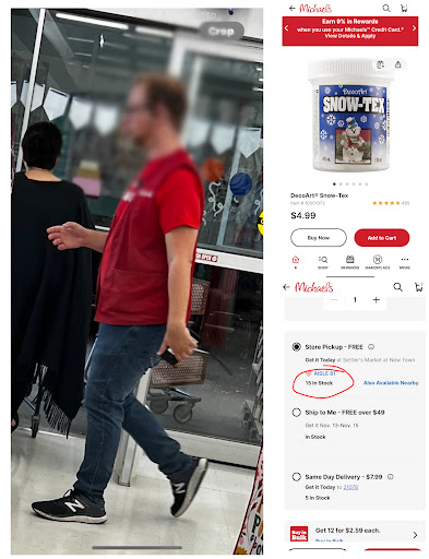 Read moreThis is the (current) manager. This is the product I was in search of (snow-tex). When asked where it was (because it wasn’t in aisle 81 as the website states), he decided to be confrontational with a very snarky “sir, I’m trying to help you”, AFTER he stated they didn’t have any if it wasn’t in that aisle. The website shows 15 in stock. That aisle has been partitioned for Christmas ware so it was moved to make room for seasonal items. It was moved. I found the item, all 15 of them, doing his job for him. 1). Do not become confrontational with a customer. 2). Let a customer finish speaking. 3). Don’t be snarky with a customer. 4). Do your j-o-b. It’s simple, especially when there less people in your store than bottles of snow-Tex on a shelf IN AISLE FIFTY SEVEN. And 5). ? Some advice: You’re there to help the customer. We make YOUR job happen. Retail isn’t for everyone, but there are jobs where you can be far in the back of a warehouse and don’t have to deal with the public. ...